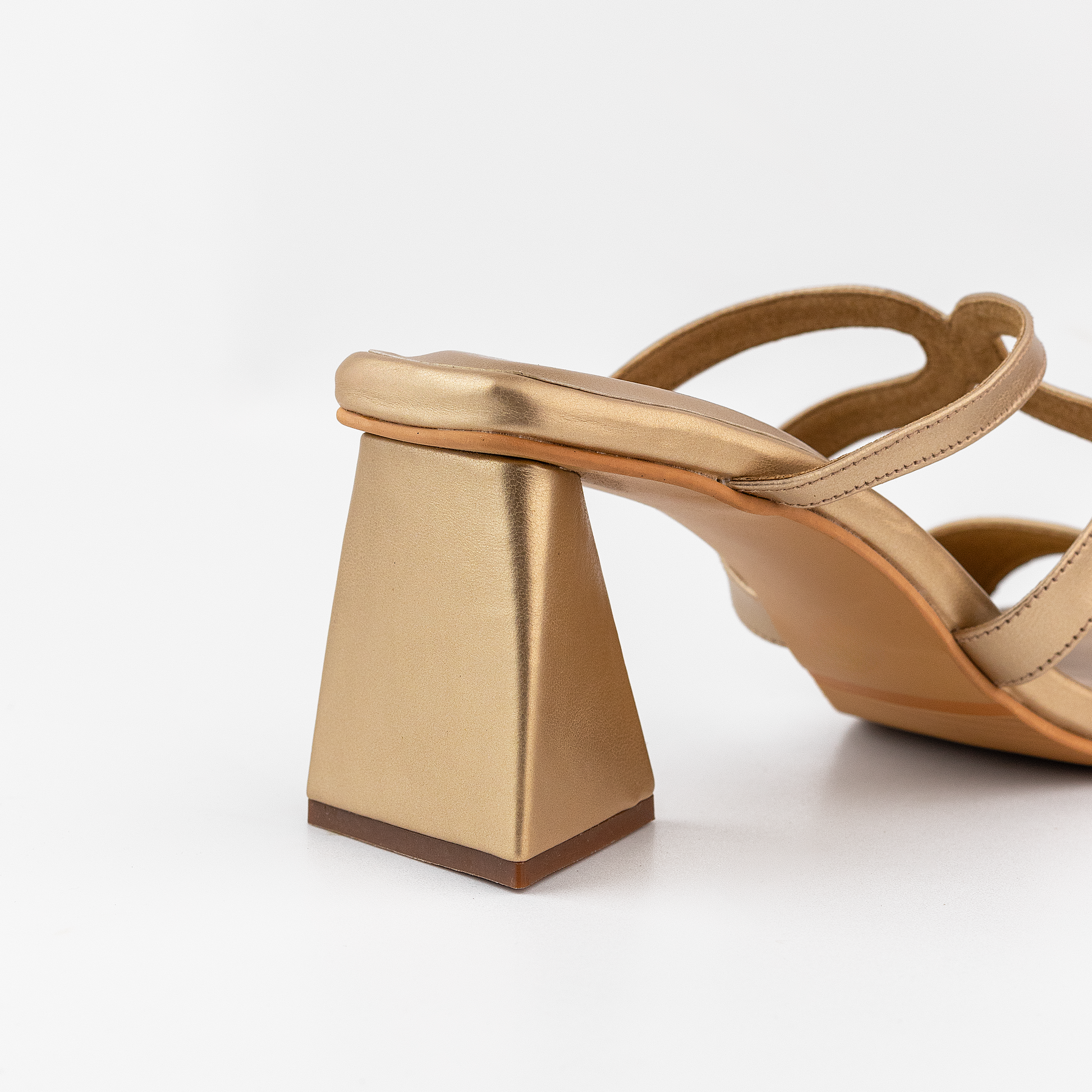 If you are in search of a sophisticated pair of gold heels, this pair checks all the boxes. With their elegant open-toed design and subtly curved contoured silhouette, they provide an ideal foundation for building your outfits.