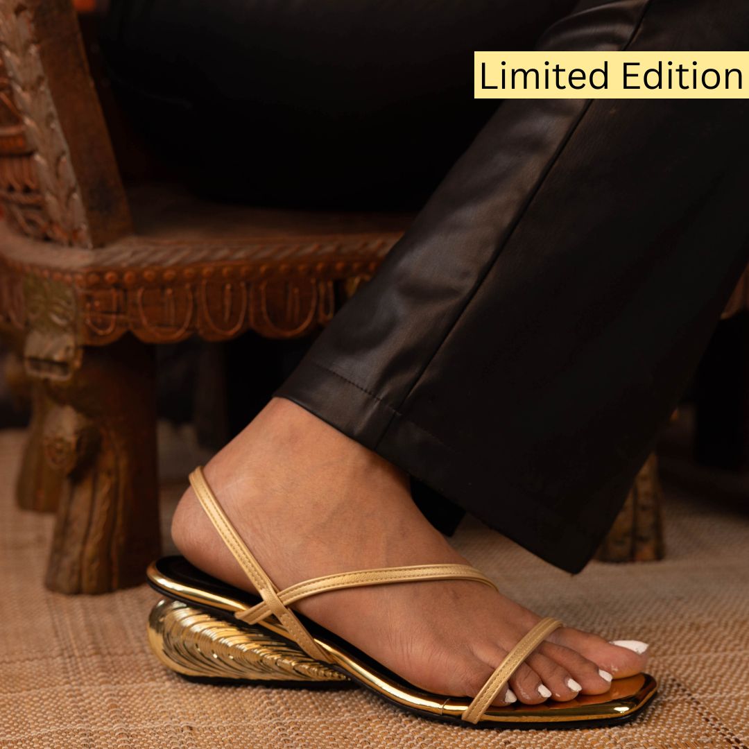 For a festive look: Style with a saree or salwar in jewel tones (emerald, wine, or deep navy) — the gold heel will peek through and give that luxe finish.