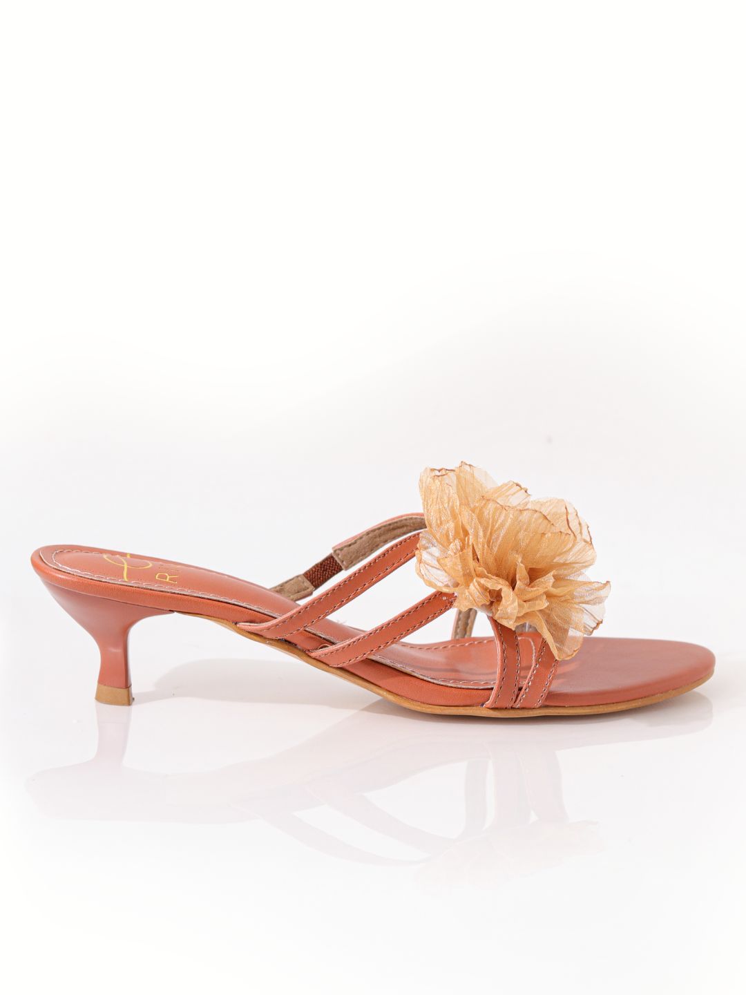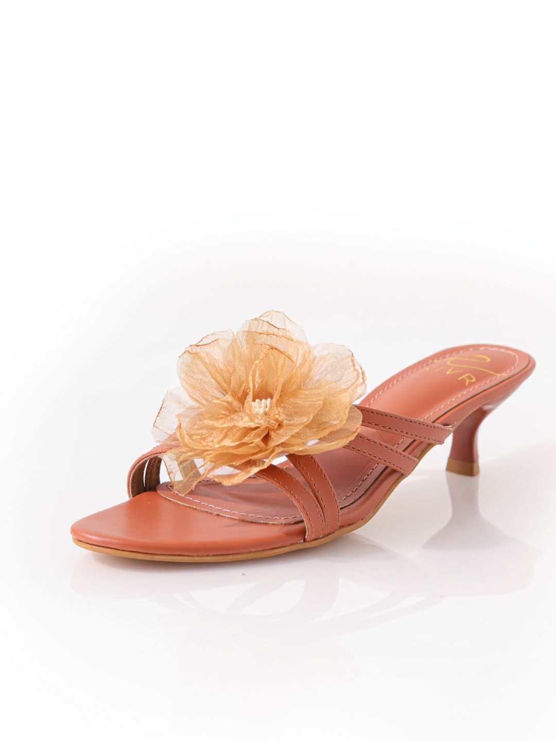 Effortlessly chic, these tan heels combine style and sophistication in a single step. Featuring a sleek, strappy design that wraps gracefully around the foot, the rich tan hue adds a touch of warmth to any ensemble. The standout feature? A whimsical flower detail, artfully positioned off-center, adding a playful yet elegant twist.