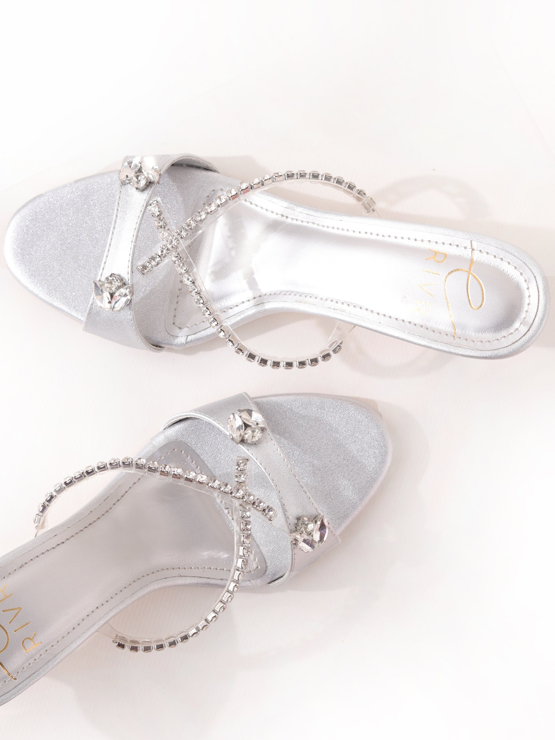 Featuring a 2.25 inch stiletto heel, open toe, and crisscross vamp, these slide-style heels will elevate any outfit.