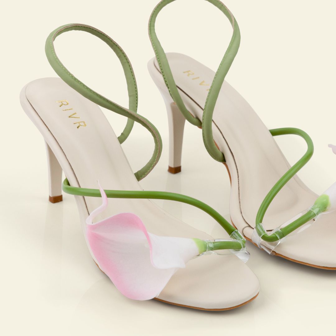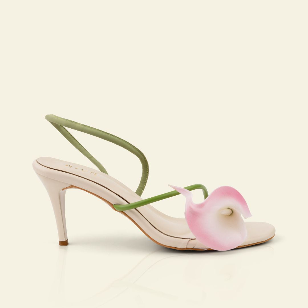 The flower on this shoe is crafted from a proprietary blend of vegan leather and foam, giving it a sculptural yet soft form that mirrors the natural elegance of the lily.